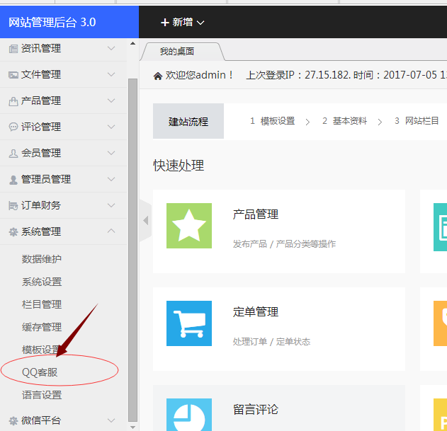 2.进入设置界面-切换到前台设置选项卡。开关手机版或QQ客服功能及第三方快捷登陆功能。